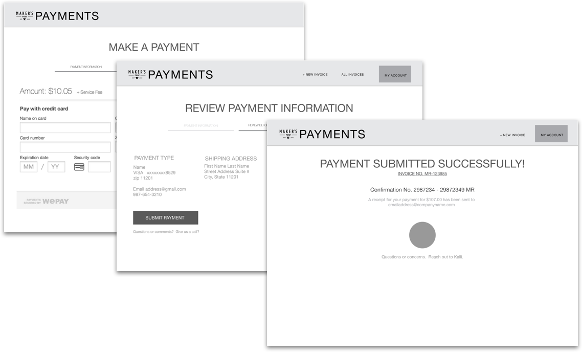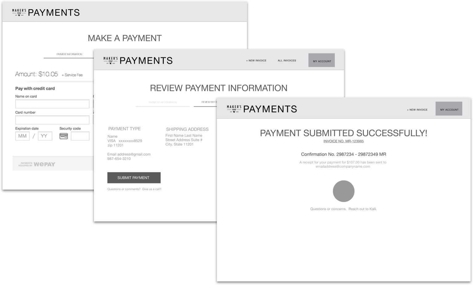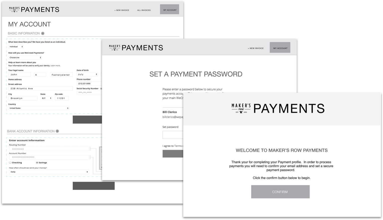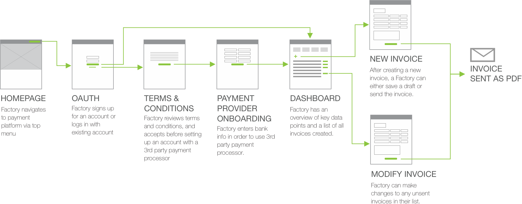 And we wanted to provide factories with a basic, easy to use software that could replace the analog systems that many of them struggled to maintain.Working closely with factories to understand the types of information they would need to receive with each transaction in order for their business to run smoothly we mapped out a simple first iteration of this product that utilized a 3rd party payment processor (WePay) which allowed us to keep our transaction fees competitive for our brands.
