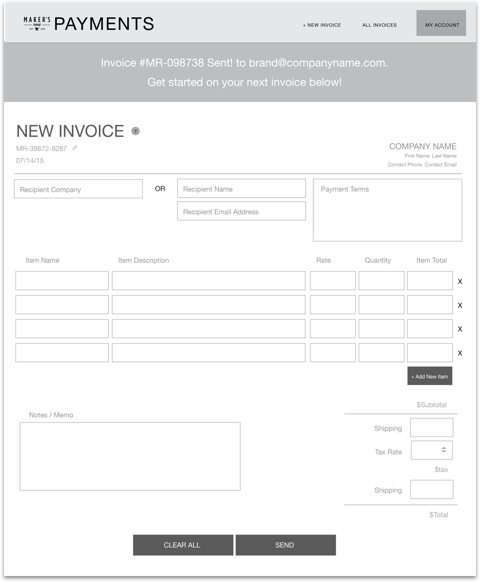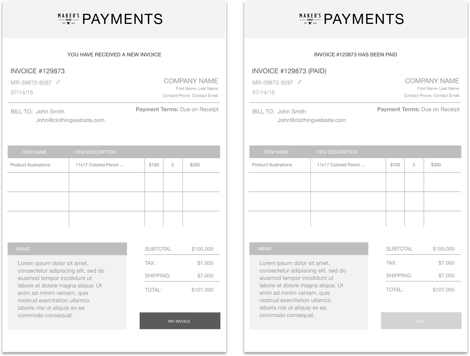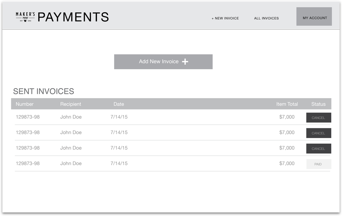 Maker’s Row is a marketplace that connects designers (referred to as “brands”) with factories in the United States. The aim of this project was to improve the experience of users on both sides of the Maker’s Row marketplace by introducing an invoicing/payment feature. We hoped to give brands peace of mind in knowing that the transactions that they made through our marketplace would be secure.